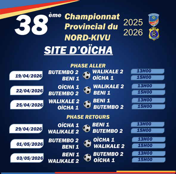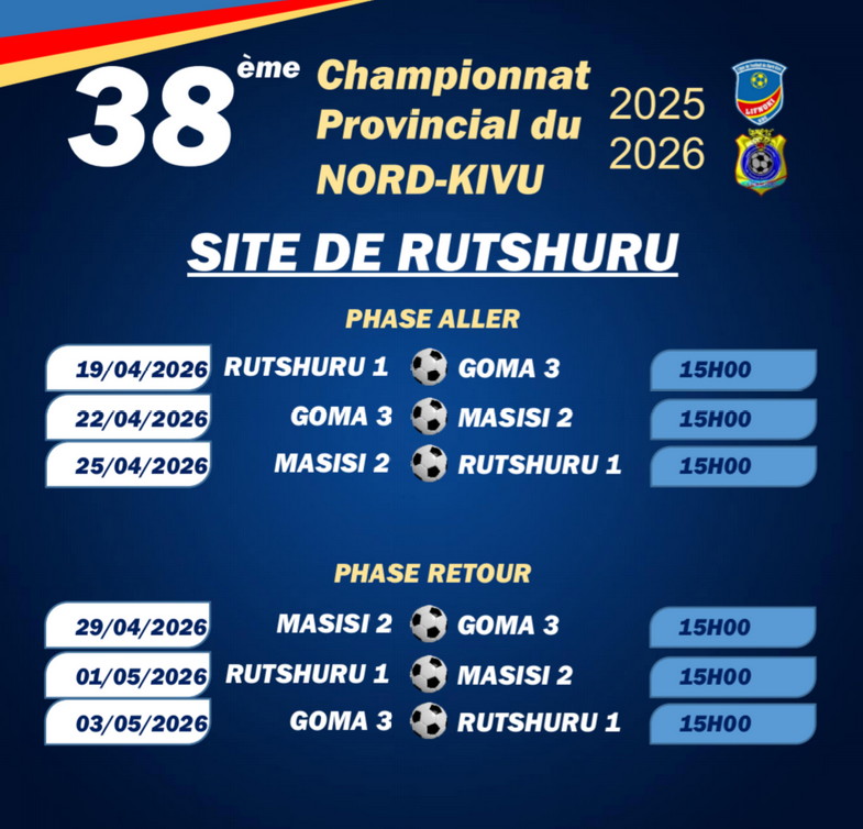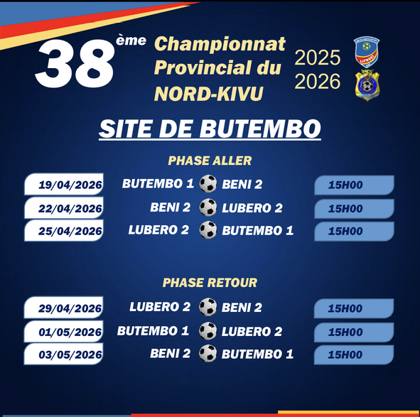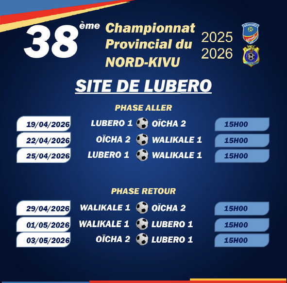 38e Championnat Provincial/Nord-Kivu: voici tous les matchs Laisser un commentaire / Par LIFNOKI LIFNOKI / mars 26, 2026